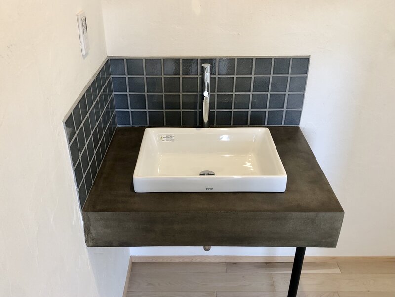 天板はモルタルで仕上げており、その後、お客様がご自分でモルタル用のステイン系塗料を塗ってくださいました!