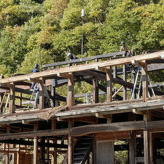 最初は棟木(屋根のてっぺんにある部材)や母屋(屋根の途中にある部材)を外していくのですが、