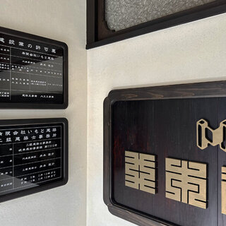 看板の表記部分は、透明のアクリル板に白文字で作成してもらい、裏板は拭き色の出た古材を使って、枠にはめ込みました。