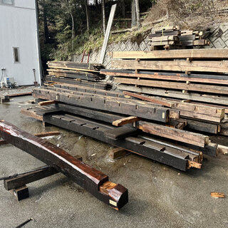 先日、解体が完了した古民家の洗い(洗浄)作業を始めました。